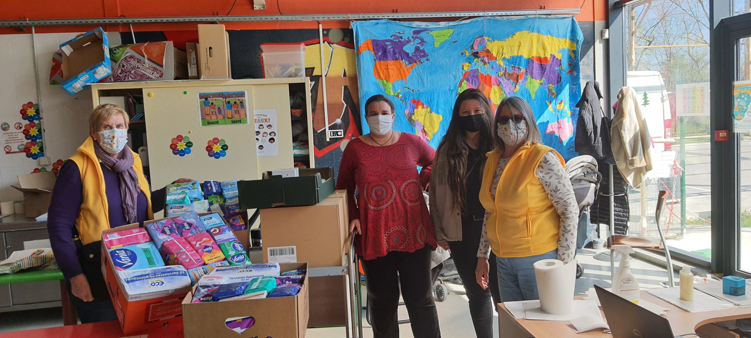 L’équipe du Zonta Club de Meaux a déposé le vendredi 02 avril 2021 pour les femmes accompagnées à l’accueil de jour un don de serviettes hygiéniques et produits d’hygiène.