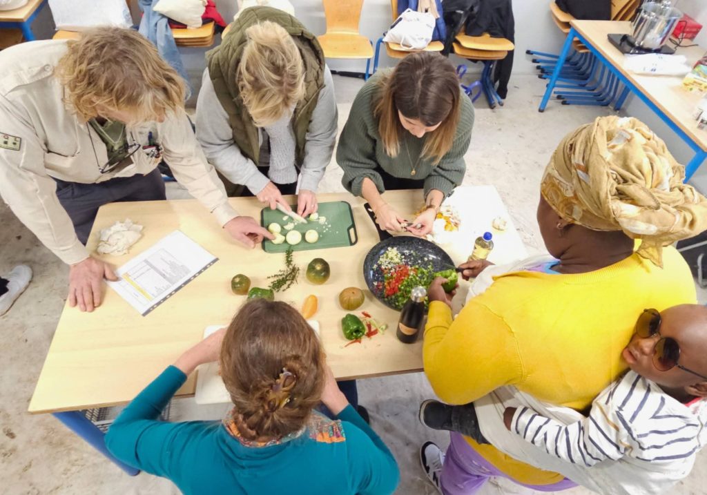 En parallèle, un atelier culinaire, animé par Philippe – retraité formateur en restauration – et par les équipes de travailleurs sociaux et du maraichage, s’est organisé en lien avec les services de DEMETER de l’ARILE (CHU, APE, FE-FSM). Une quinzaine de bénéficiaires y ont participé en mode « Top Chef ». Opération menée pour les bénéficiaires des paniers solidaires (personnes hébergées et salariés en insertion de la Ressourcerie et du Maraichage).
